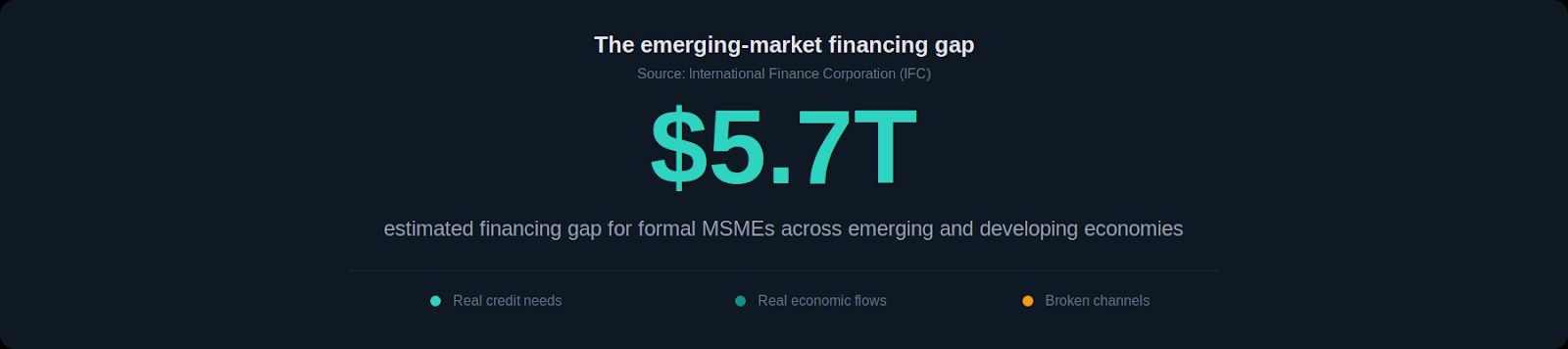 The IFC estimates that formal small and medium enterprises across developing economies face a $5.7 trillion financing gap. That’s not a footnote in a research paper. That’s the distance between how much productive capital these economies need and how much actually reaches them through existing channels.